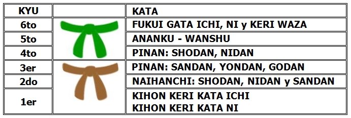 Colores del obi kyu (cinto de color) según usanza del dojo